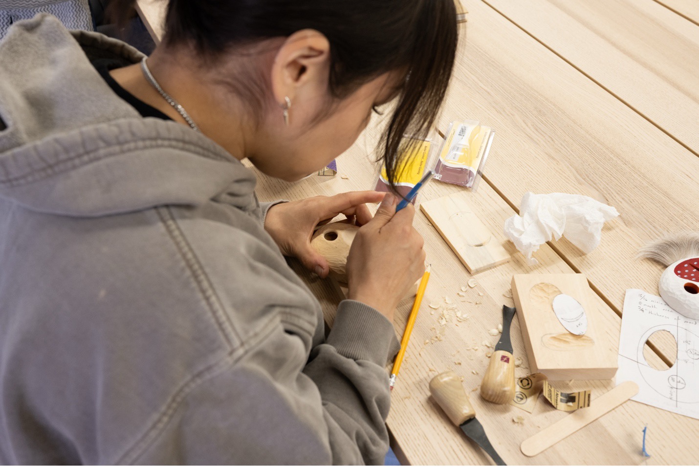 Alaska Native Arts Foundation hosts hands-on workshops that support mentorship, cultural learning, and intergenerational artistic skill-building. In 2025, we partnered with Anchorage Museum to present a four-workshop series in the Seed Lab, alongside artist outreach through community events and cultural gatherings in Anchorage and the Mat-Su.