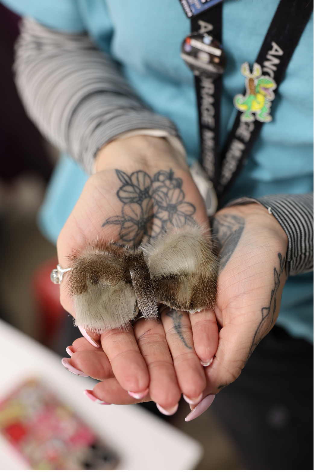 Seal Skin Bowtie Sewing Workshop: Led by Joni Speiss, a subsistence harvester originally from Nome and currently based in Anchorage. This class taught the basics of skin sewing through a simple, wearable bowtie project.